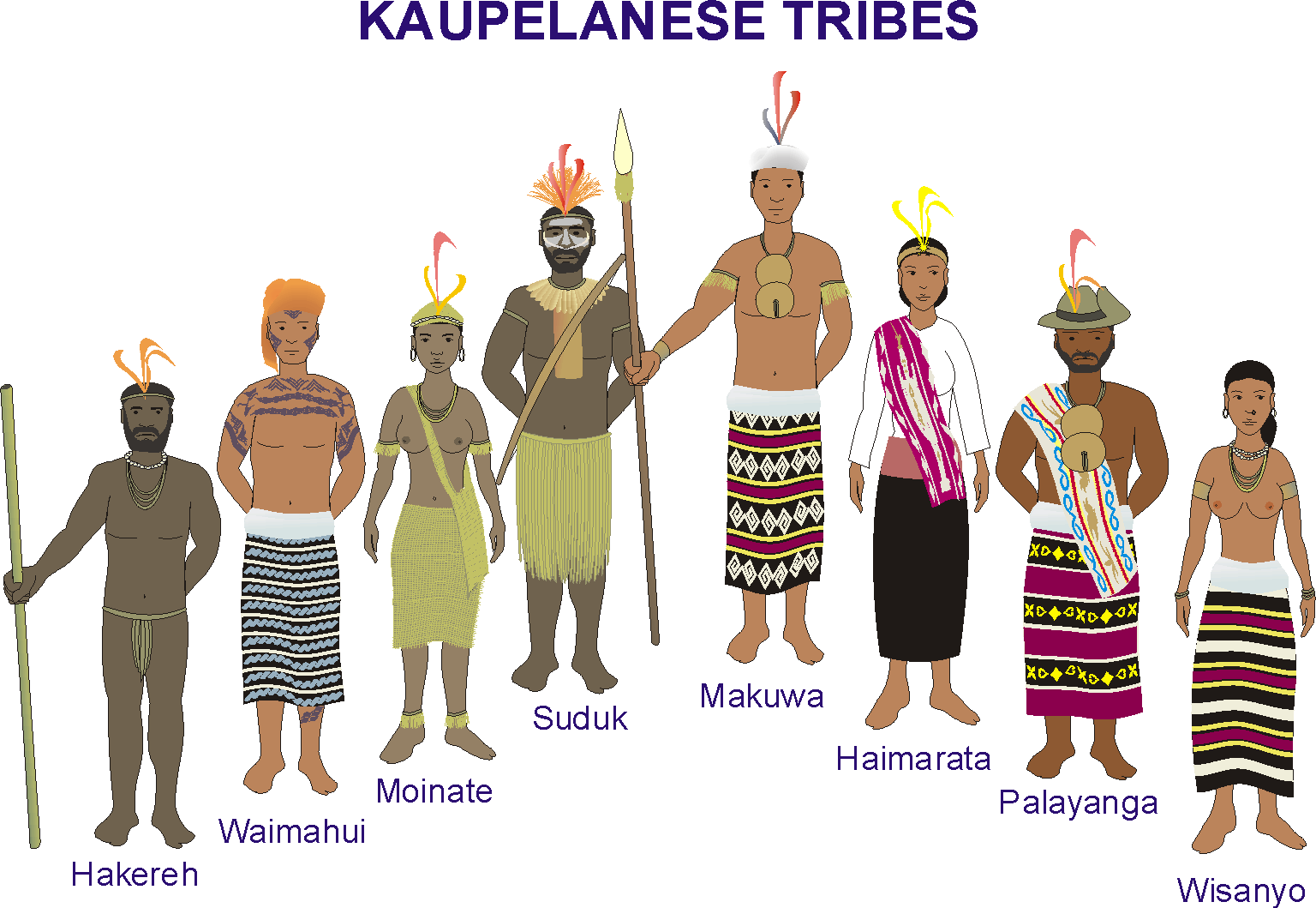 The Kaupelanese mythology received various influences – from Papuan, Hindu-Javanese, Timorese and Moluccan culture – over its ancient Austronesian basis. Some mythological entities are described below:Nai Watera (from Kaupelanese, ‘the Lord Sun’) – is the great Sun-King, the most powerful mythological entity that rules upon the Earth and the Heaven. He has a long and gray beard and wears a black sarong with a white band along the waist and a red headdress. His body is full of tattoos, necklaces and gold bracelets. Legends tell about Mawaungi, the Night-Princess, a virgin that was furious when the king has chosen her sister, the Moon-Queen, as wife.